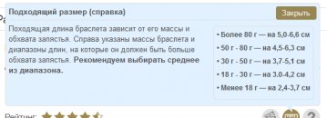 The suitable length of the bracelet depends on its weight and the girth of the wrist. On the right are the weights of the bracelet and the length ranges by which it should be larger than the girth of the wrist.- More than 80 g - by 5.0-6.6 cm