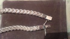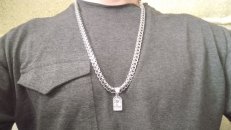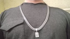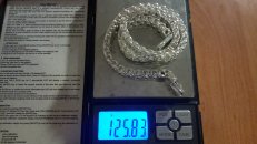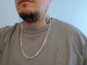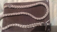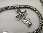 Полновесная цепочка.Очень популярное среди мужчин плетение «Рамзес», также на просторах интернета данное плетение можно увидеть под названием «Двойной обратный бисмарк». В особенности мужское внимание привлекают толстые серебряные цепочки из «Двойного обратного бисмарка» с размерами близкими к размерам на фото. И тем не менее, если такая цепочка лично для Вас смотрится на шее весьма громоздкой или наоборот маловатой, то Вы без особого труда можете откорректировать практически любой её параметр под свои вкусы, в том числе есть возможность выбрать как с чернением, так и нечернёную или же с родированием.